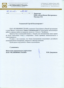 Работаем с данной компанией уже более 5 лет, осуществили не один десяток перевозок как по Уральскому региону так и по необъятной нашей Родине.